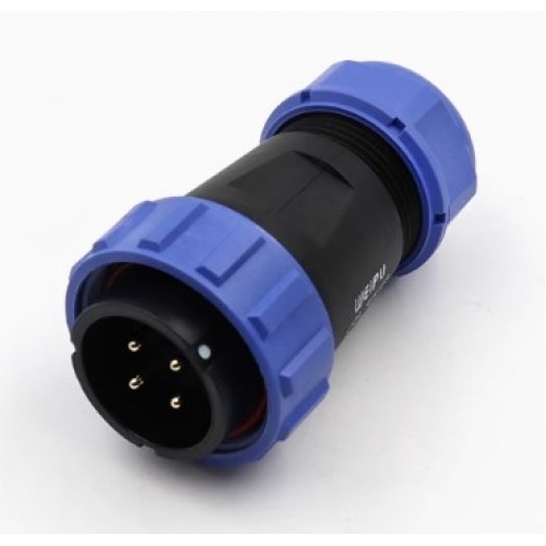 Роз'єм Weipu SP2910/P4 - кабельна вилка на 4 контакта з різьбовим з'єднанням. Діаметр контактів 2.5 мм, номінальне навантаження 500В, струм 25А.