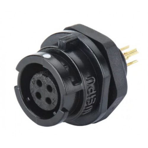 Роз'єм Weipu SY1112/S4 - панельна розетка на 4 контакта, призначена для роботи з напругою 125В та струмовим навантаженням до 3А, має посадковий діаметр 11 мм.