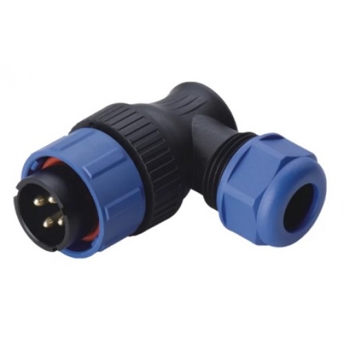Роз'єм Weipu SY2116/P4 - кутова кабельна вилка на 4 контакта, призначена для роботи з напругою 500B та струмовим навантаженням до 30А, має посадковий діаметр 21 мм.