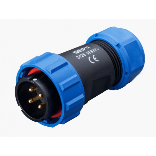 Роз'єм Weipu SY2510/P4 - кабельна вилка на 4 контакта, призначена для роботи з напругою 500B та струмовим навантаженням до 25А, має посадковий діаметр 25 мм.