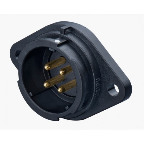 Роз'єм Weipu SY2513/P4 - панельна вилка на 4 контакта, призначена для роботи з напругою 500B та струмовим навантаженням до 25А, має посадковий діаметр 25 мм.