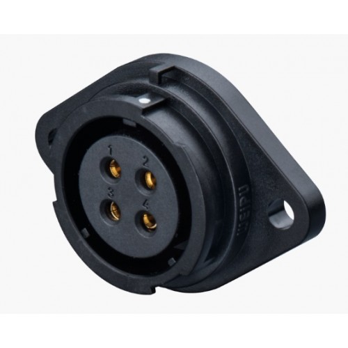 Роз'єм Weipu SY2513/S2 - панельна розетка на 2 контакта, призначена для роботи з напругою 500B та струмовим навантаженням до 25А, має посадковий діаметр 25 мм.