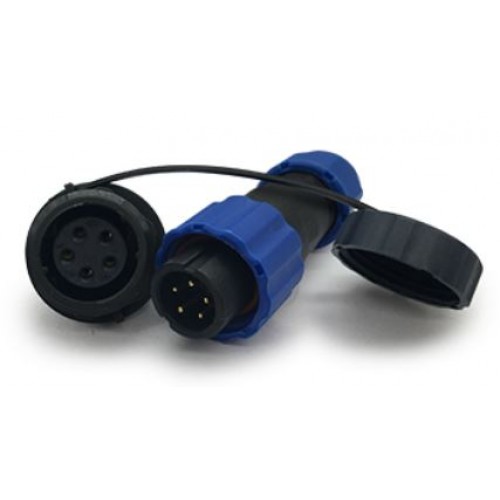 Роз'єм герметичний IP68 серії SZC13 (SD13) 5P-M-FB — п'яти-контактні кабельна вилка і панельна розетка (кріпиться до блоку гайкою). Діаметр контактів d = 1,00 мм, номінальна напруга 250В і струмовий навантаження до 5А.