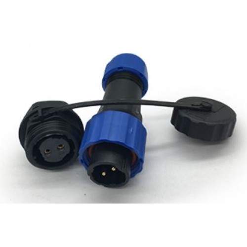 Роз'єм герметичний IP68 серії SZC16 (SD16) 2P-M-FB — дво-контактні кабельна вилка і панельна розетка ручного з'єднання. Діаметр контактів d = 1,8 мм, номінальна напруга 380В і струмовий навантаження до 10А.