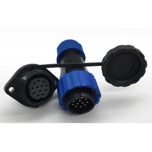 Роз'єм герметичний IP68 серії SZC21 (SP20) 14P-M-FL — чотирнадцяти-контактні кабельна вилка і панельна розетка на фланець ручного з'єднання. Діаметр контактів d = 1,0 мм, номінальна напруга 250В і струмовий навантаження до 5А.
