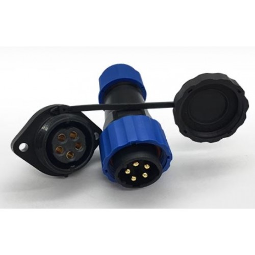 Роз'єм герметичний IP68 серії SZC21 (SP20) 5P-M-FL — п'яти-контактні кабельна вилка і панельна розетка на фланець ручного з'єднання. Діаметр контактів d = 2,8 мм, номінальна напруга 380В і струмовий навантаження до 25А.
