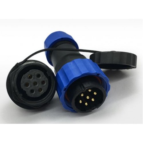 Роз'єм герметичний IP68 серії SZC21 (SD21) 7P-M-FB — семи-контактні кабельна вилка і панельна розетка ручного з'єднання. Діаметр контактів d = 1,8 мм, номінальну напругу 380В і струмовий навантаження до 10А.