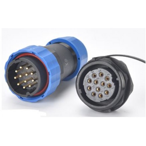 Роз'єм герметичний IP68 серії SZC28 (SD28) 12P-M-FB — дванадцяти-контактні кабельна вилка і панельна розетка ручного з'єднання. Діаметр контактів d = 1,8 мм, номінальна напруга 380В і струмовий навантаження до 10А.