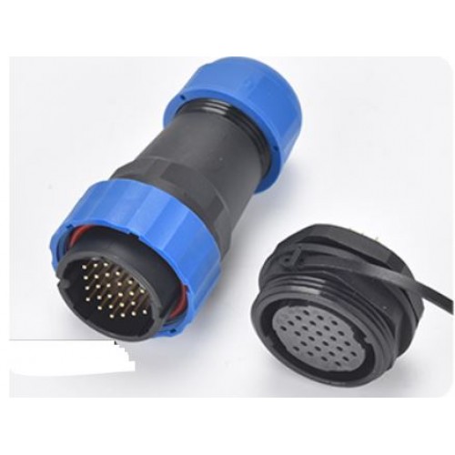Роз'єм герметичний IP68 серії SZC28 (SD28) 26P-M-FB — двадцяти шести-контактні кабельна вилка і панельна розетка ручного з'єднання. Діаметр контактів d = 1,0 мм, номінальна напруга 250В і струмовий навантаження до 5А.