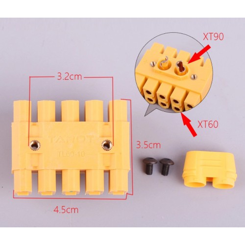 Мережевий розгалужувач TL60-10 - розроблений спеціально для дронів середнього та великого розміру. Підтримує будь-який тип дронів з кількістю вихідних ліній до 10. Корпус - цільний литий платик, а внутрішня схема виготовлена з суцільної міді (позолочена) та забезпечує безперервний струм 150А та імпульсний струм до 200 А.