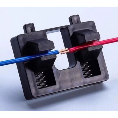 Тримач для паяння дротів — зручний інструмент для фіксації проводів під час паяння. Високоякісні пружини забезпечують легке затискання, максимальний отвір для дроту становить 7.3 мм, що дозволяє працювати з різними типами кабелів. Міцний зносостійкий корпус гарантує тривалий термін служби навіть при інтенсивному використанні.