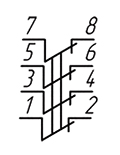 Контактна група перемикачів ТВ1-4 складається з нормально замкнутих 1-2, 3-4, 5-6, 7-8 контактів.
