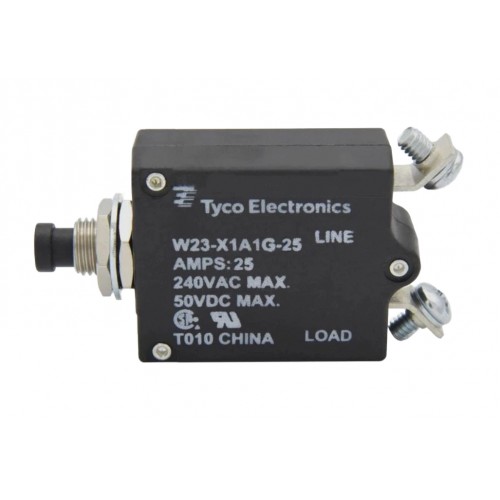 Автоматичний вимикач TE Connectivity (серія Potter & Brumfield W23) - W23-X1A1G-25 - це компактний термічний захисний автомат, призначений насамперед для захисту приладів та електронного обладнання, де важливі невеликі габарити та швидкий відгук на перевантаження.