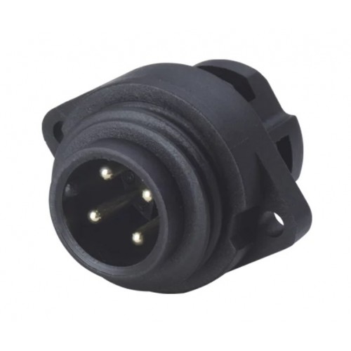 Роз'єм Weipu WA22J4Z2 - панельна вилка на 4 контакта, призначена для роботи з напругою 250В та струмовим навантаженням до 10А, має посадковий діаметр 22 мм.