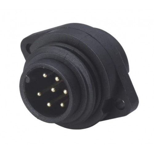 Роз'єм Weipu WA22J7Z1 - панельна вилка на 7 контактів, призначена для роботи з напругою 250В та струмовим навантаженням до 10А, має посадковий діаметр 22 мм.
