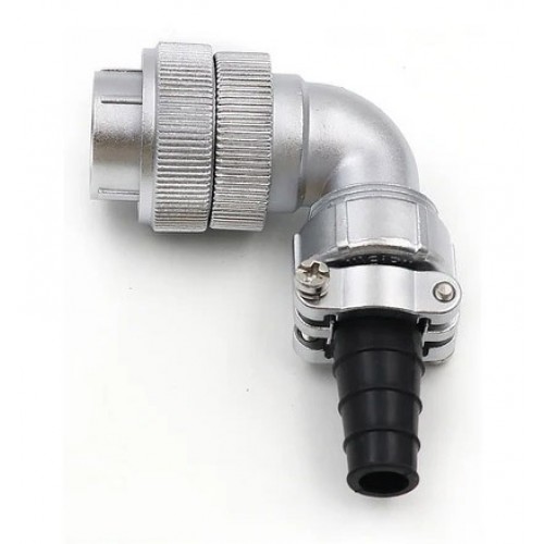 Роз'єм WF24J12BTV1 – 12 контактна герметична кабельна вилка з кутовим виведенням під кабель та механічним затиском. Має посадковий діаметр 24 мм, з'єднує ланцюг зі струмом до 30+5А і напругою до 500В, кріплення дротів здійснюється методом паяння.