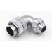 | Розміри та схема роз'ємів серії WF TU кабельного кутового коннектора з металевою зажимною гайкою |