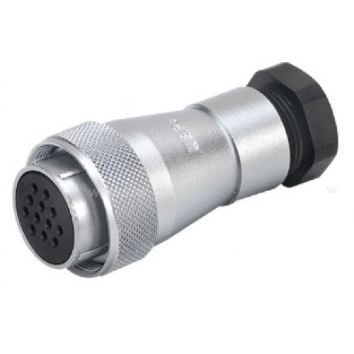 Роз'єм WF24K12TA1 – 12 контактна герметична кабельна розетка з прямим виведенням під кабель. Має посадковий діаметр 24 мм, з'єднує ланцюг зі струмом до 10А і напругою до 500В, кріплення дротів здійснюється методом паяння.