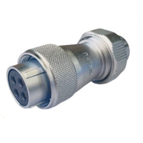 Роз'єм WF24K3TE1 – трьох контактна герметична кабельна розетка з прямим виведенням під кабель. Має посадковий діаметр 24 мм, з'єднує ланцюг зі струмом до 25А і напругою до 500В, кріплення дротів здійснюється методом паяння.