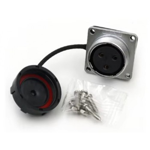 Роз'єм WF24K3Z2 – трьох контактна герметична панельна розетка з прямим виведенням під кабель. Має посадковий діаметр 24 мм, з'єднує ланцюг зі струмом до 10А і напругою до 500В, кріплення дротів - на гайку.