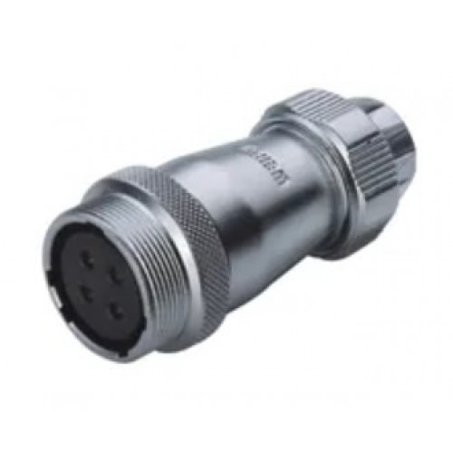 Роз'єм WF24K4ZEB1 – чотирьох контактна герметична міжкабельна розетка з прямим виведенням під кабель. Має посадковий діаметр 24 мм, з'єднує ланцюг зі струмом до 25А і напругою до 500В, кріплення дротів здійснюється методом паяння.