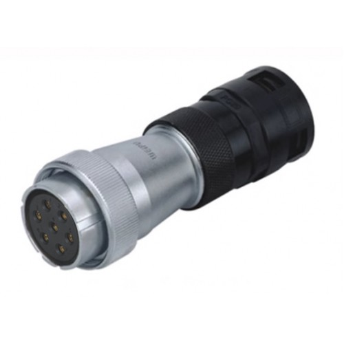 Роз'єм WF24K9TN1 – дев'яти контактна герметична кабельна розетка з прямим виведенням під кабель. Має посадковий діаметр 24 мм, з'єднує ланцюг зі струмом до 25+5А і напругою до 500В, кріплення дротів здійснюється методом паяння.