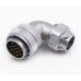 | Розміри та схема роз'ємів серії WF кабельної кутової вилки з металевою зажимною гайкою |