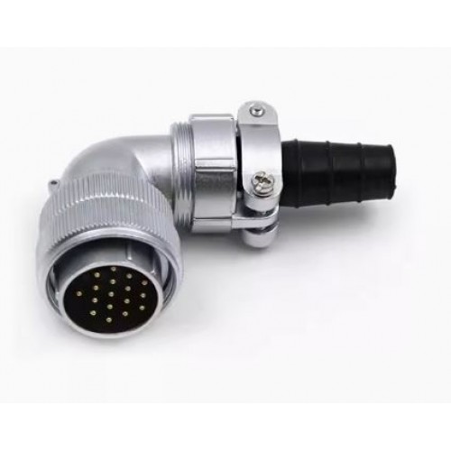 Роз'єм WF28J17TV1 – сімнадцяти контактна герметична кабельна вилка з кутовим виведенням під кабель. З'єднання з відповідною частиною - різьбове. Має умовний посадковий діаметр 28 мм, з'єднує ланцюг зі струмом до 10А і напругою до 500В, кріплення дротів здійснюється методом паяння.
