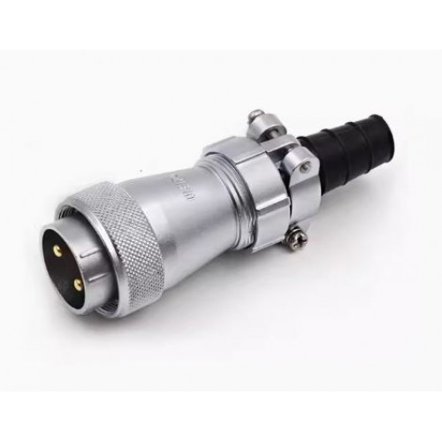 Роз'єм WF28J2TI1 – двох контактна герметична кабельна вилка з прямим виведенням під кабель. Має посадковий діаметр 32 мм, з'єднує ланцюг зі струмом до 50А і напругою до 500В, кріплення дротів здійснюється методом паяння або обжиму.