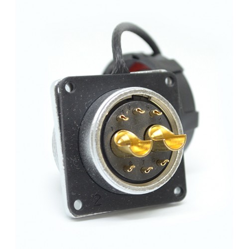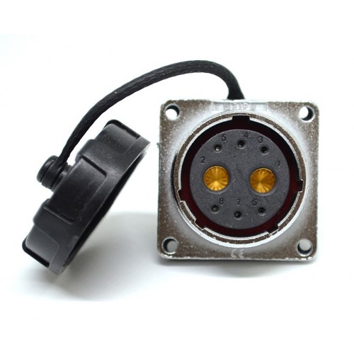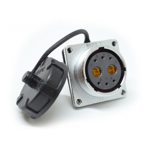 Роз'єм WF28K8BZ1 – восьми контактна герметична панельна розетка з прямим виведенням під кабель. Має посадковий діаметр 28 мм, з'єднує ланцюг зі струмом до 60А (2 контакта) і 5А (6 контактів) і напругою до 500В і 400В, кріплення дротів здійснюється методом паяння.