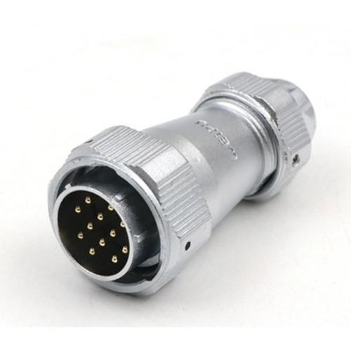Роз'єм Weipu WY24J12TE1 – 12 контактна герметична кабельна вилка з металевою затискною гайкою. Має посадковий діаметр 24 мм, з'єднує ланцюг зі струмом до 10А і напругою до 500В, кріплення дротів здійснюється методом паяння. З'єднання між конекторами - байонетне.