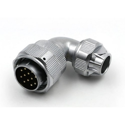 Роз'єм Weipu WY24J12TU1 – 12 контактна герметична кабельна кутова вилка з металевою затискною гайкою. Має посадковий діаметр 24 мм, з'єднує ланцюг зі струмом до 10А і напругою до 500В, кріплення дротів здійснюється методом паяння. З'єднання між конекторами - байонетне.