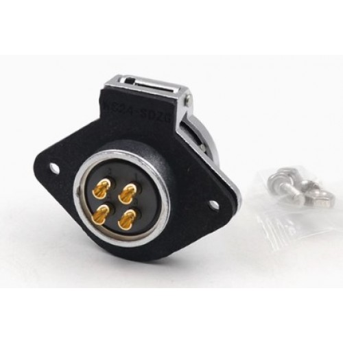 Роз'єм Weipu WY24J4ZG1 – 4 контактна герметична панельна вилка на фланці з двома отворами та металевою кришкою на пружині. Має посадковий діаметр 24 мм, з'єднує ланцюг зі струмом до 25А і напругою до 500В, кріплення дротів здійснюється методом паяння. З'єднання між конекторами - байонетне.