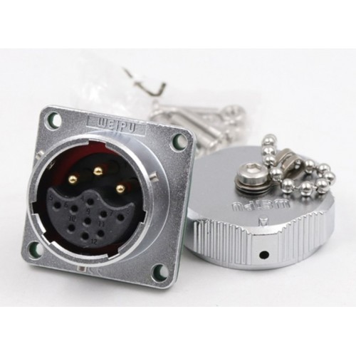 Роз'єм Weipu WY24K12BZ1 – 12 контактна герметична панельна розетка з квадратним фланцем, та кріпленням на 4 гвинта. Має посадковий діаметр 24 мм, з'єднує ланцюг зі струмом до 30А+5A і напругою до 500В, кріплення дротів здійснюється методом паяння. З'єднання між конекторами - байонетне.