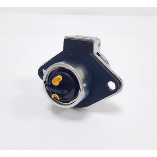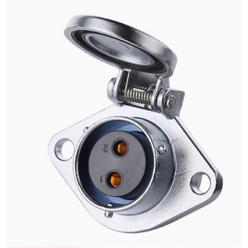 Панельна розетка YA-20-J02SX-03-201 - промисловий роз'єм на 2 контакта (діаметр контактів 2,7мм, опір контактів <1.0 мОм), з номінальним струмом до 20А і робочою напругою до 500V.