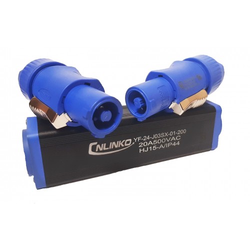З'єднувач для подовження кабелів POWERCON XLR серії YF-24 від CNLINKO має унікальну систему з'єднання, яка проста в експлуатації та обслуговуванні. Позначення кольорів вхідних/вихідних роз'ємів виключає неправильне з'єднання. Широко використовуються в аудіо-відео обладнання та в системах живлення.