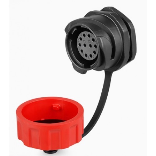Герметична панельна розетка YM-24-J12SX-02-101 - дванадцяти контактна, з прямим виводом під кабель 1.5 мм2. З'єднує ланцюг до 10А і напругою до 400В.