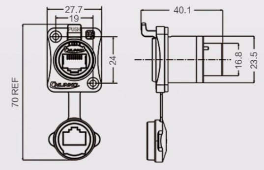 | Розміри герметичного коннектора RJ45 | |